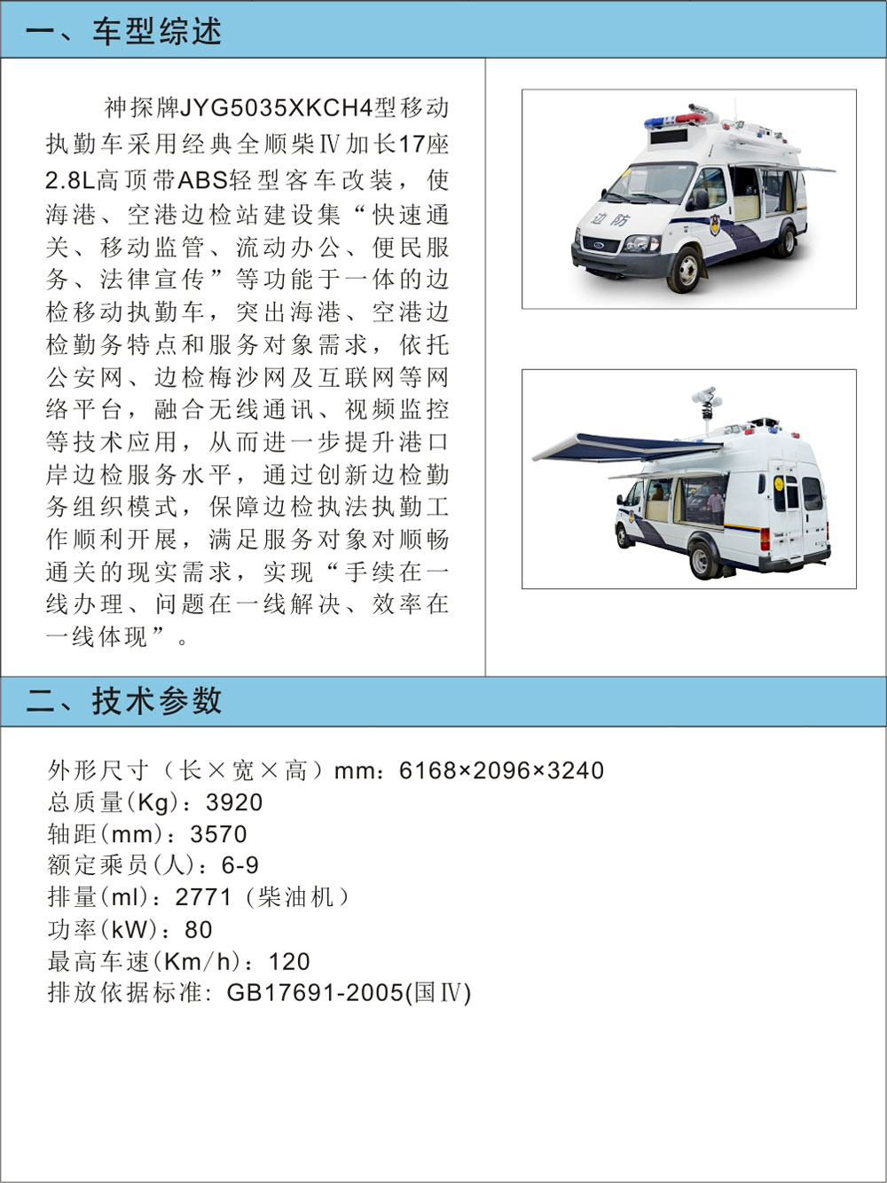 JYG5035XKCH4型移動(dòng)執勤車(chē)