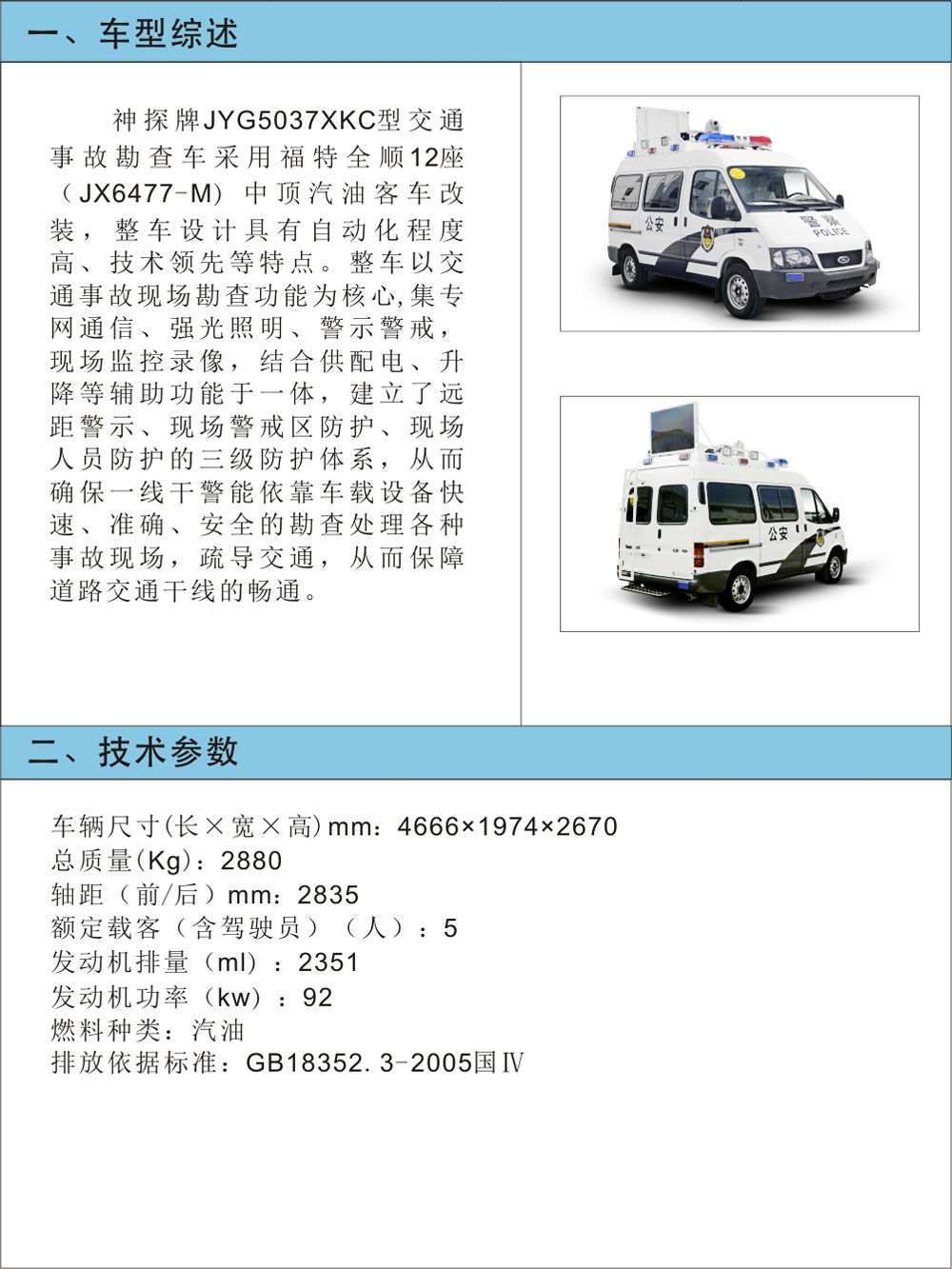 JYG5037XKC型交通事故勘查車(chē)