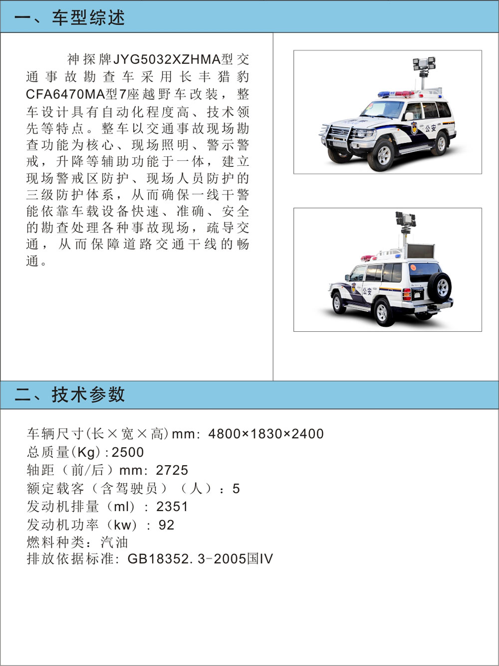 JYG5032XZHMA型交通事故勘查車(chē)