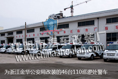 由我廠爲浙江金華公安局改裝的46台110巡邏處警車分三批交付使用