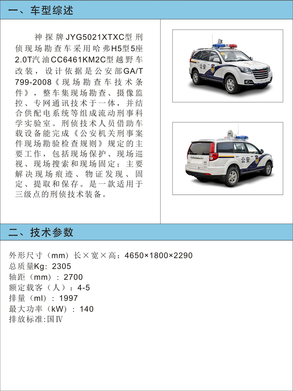 JYG5021XTXC型刑偵現場(chǎng)勘查車(chē)