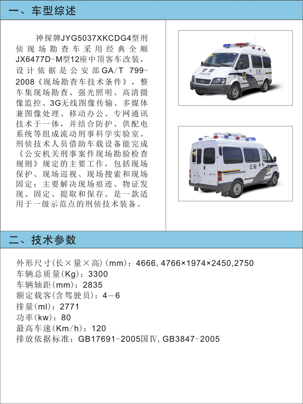 JYG5037XKCDG4型刑偵現場(chǎng)勘查車(chē)