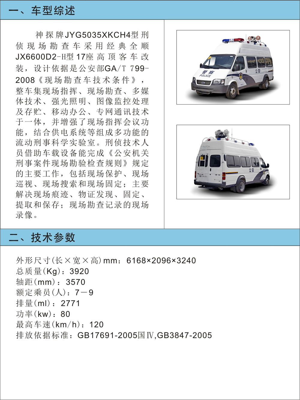 JYG5035XKCH4型刑偵現場(chǎng)勘查車(chē)