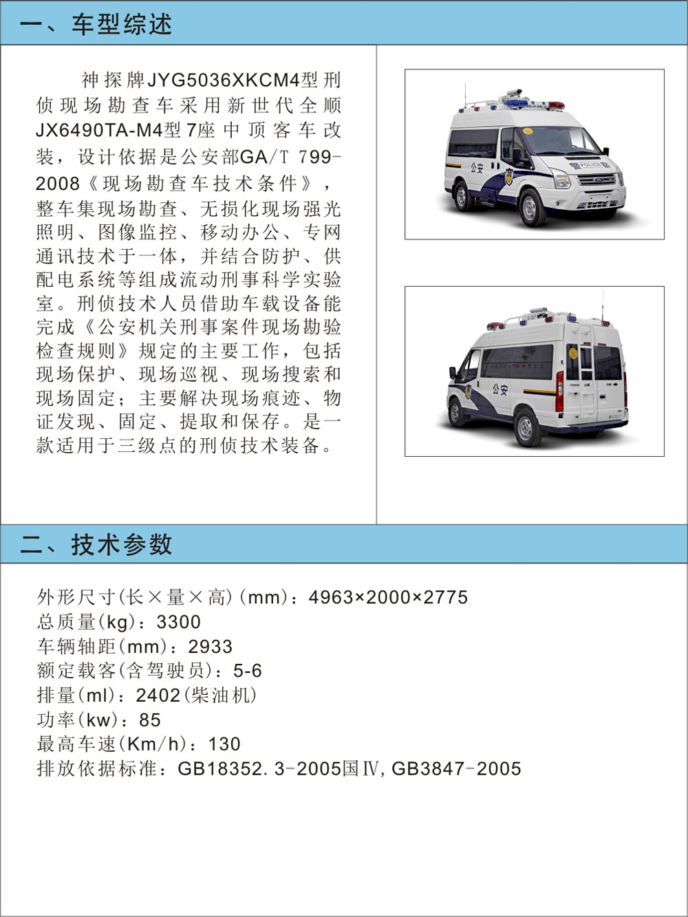 JYG5036XKCM4型刑偵現場(chǎng)勘查車(chē)