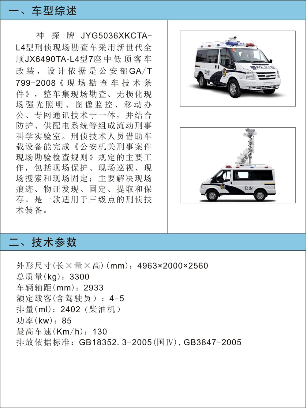JYG5036XKCTA-L4型刑偵現場(chǎng)勘查車(chē)