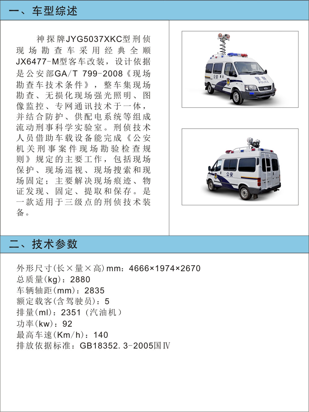 JYG5037XKC型刑偵現場(chǎng)勘查車(chē)