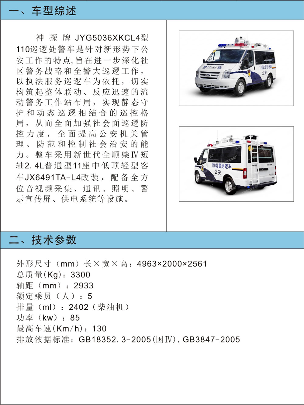 JYG5036XKCL4型110巡邏處(chù)警車(chē)